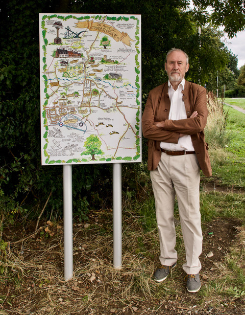 Adrian then began to work on a design for a whole village interpretation board. As he doesn’t live in Carbrooke it was up to the Heritage Group to decide what should be included. Emails, images and ideas passed between Carbrooke and France, until the final design was completed. Again it was sent to Imprint, who mounted three boards, which were installed on August Bank Holiday Monday, 2018, one at the entrance to the Millennium Green, one by the Aerolite footpath on the Norwich Road, and one to be attached to the Community centre on Blenheim Grange when completed.